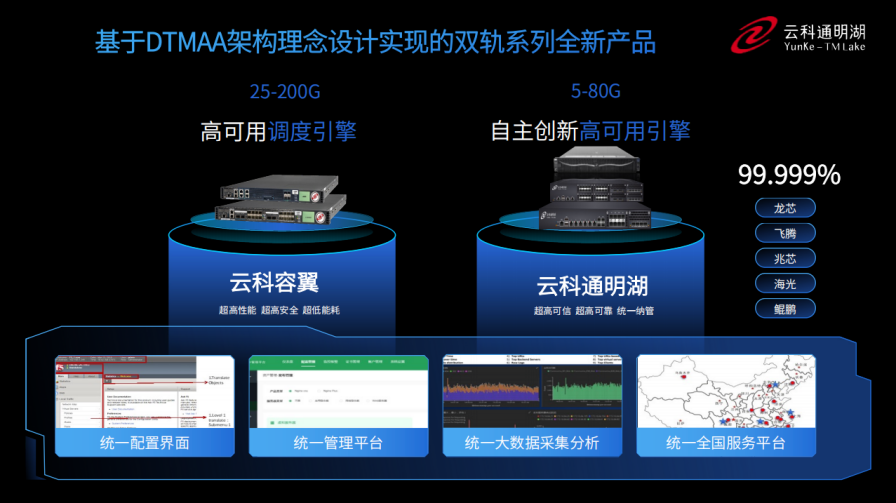 同时,为了更好的适配双轨超高可用架构,OB视讯集团推出了容翼系列和云科通明湖信创系列两大应用交付控制器产品。