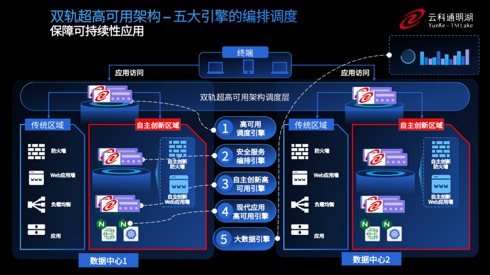 为实现双轨超高可用架构信创区和非信创区的跨域协同,实现信创区域和非信创区域的平滑过渡,OB视讯集团顺利获得五大引擎实现多层次的应用可持续性。